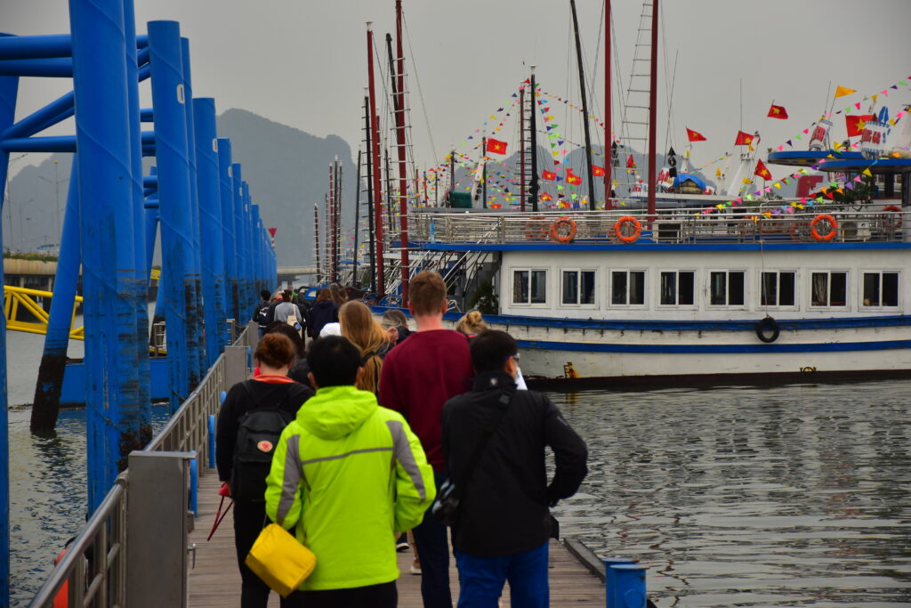 ハノイから約 3 時間半、ハロン湾船着き場に着いた。その後、ハノイ以外から来たグループとも合流して遊覧船に乗り込む。船はゆっくりと進み始めた。