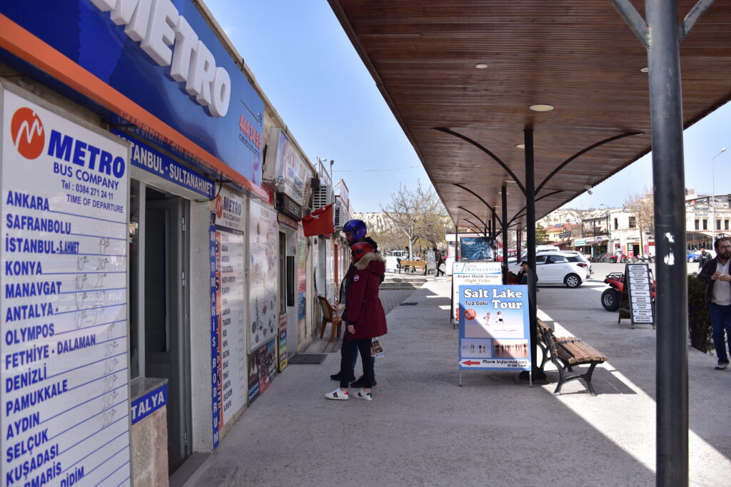 バスチケットはギョレメの中央にあるバス停で購入した。最大手のバス会社 METRO で買って、価格は 100 リラ (約 1800 円)。