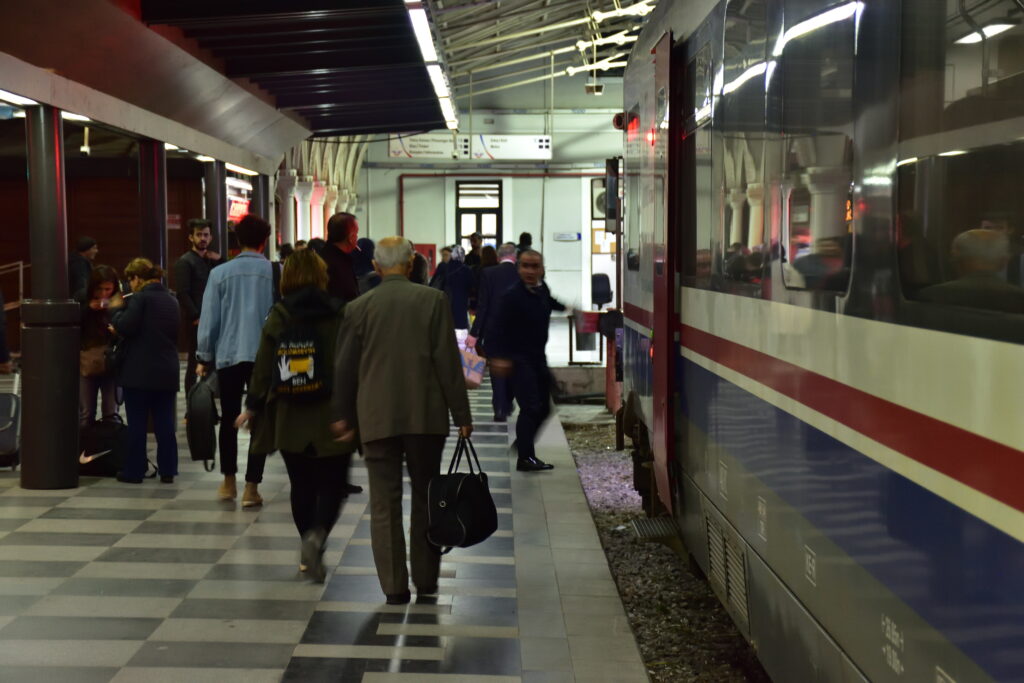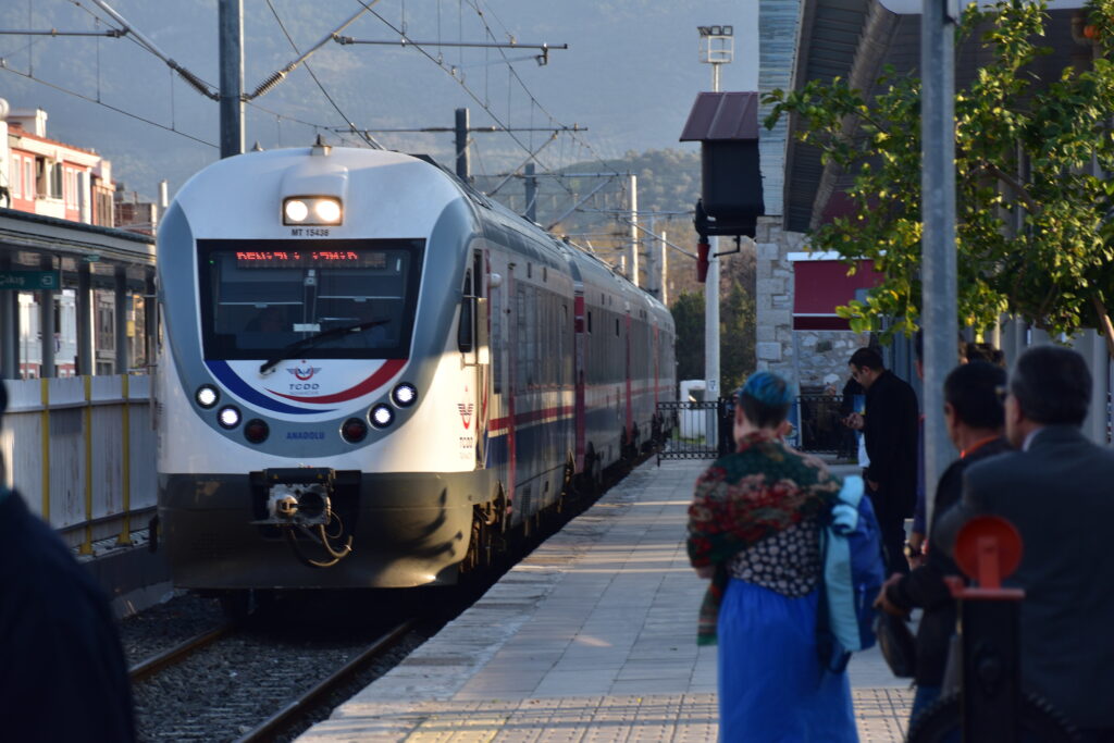 エフェスからイズミルまでは鉄道の路線が伸びている。セルチュク駅から約 1 時間 20 分でイズミルまで向かう事ができる。値段は 9 リラ(約 160 円)。電車の本数は少ない。