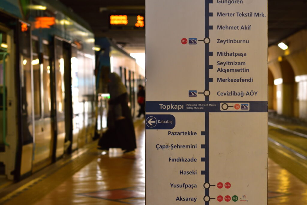 市街地、特にブルーモスク周辺からは、トラム1本で城壁まで行くことができる。T1 線「sultanahmet」にて乗車後、約 20 分ほどすると「topkapi」まで着いた。