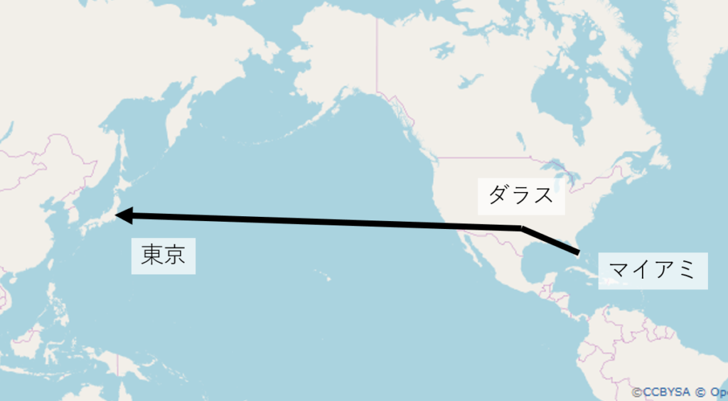 ▲ マイアミから東京までのフライト