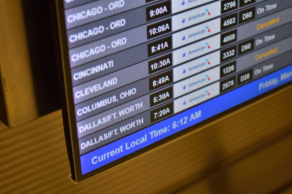 同じ航空会社、同じダラス行きでも、5 時 30 分発の便はキャンセルになっている。