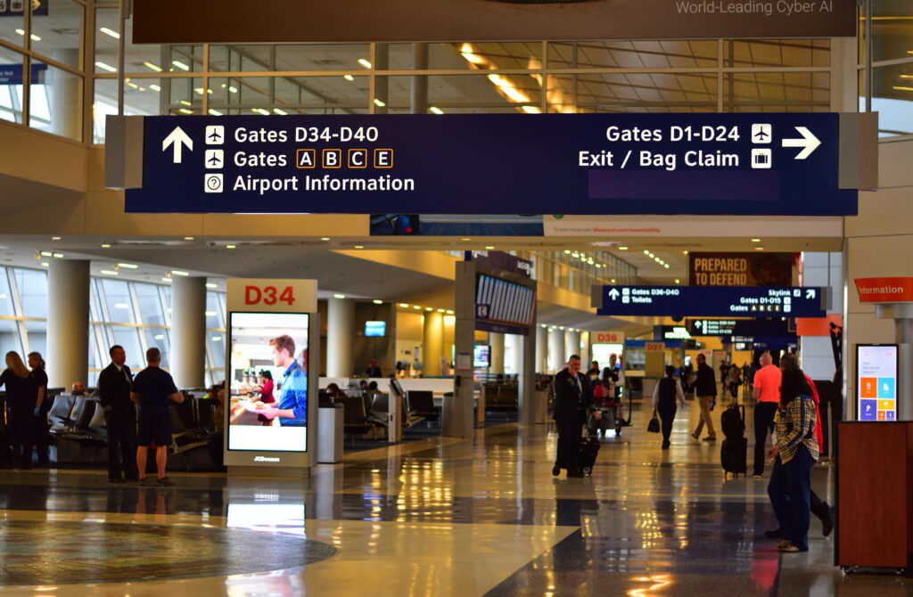 5 時前に宿を出て、空港までの約 3 km をのんびりと歩いて行った。流石アメリカ、朝 5 時でも直線的な道路を車が行き交っている。